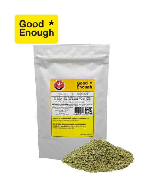Dried cannabis milled flower: a cross of Venom OG and Humboldt OG that is sufficiently potent and reasonably priced.